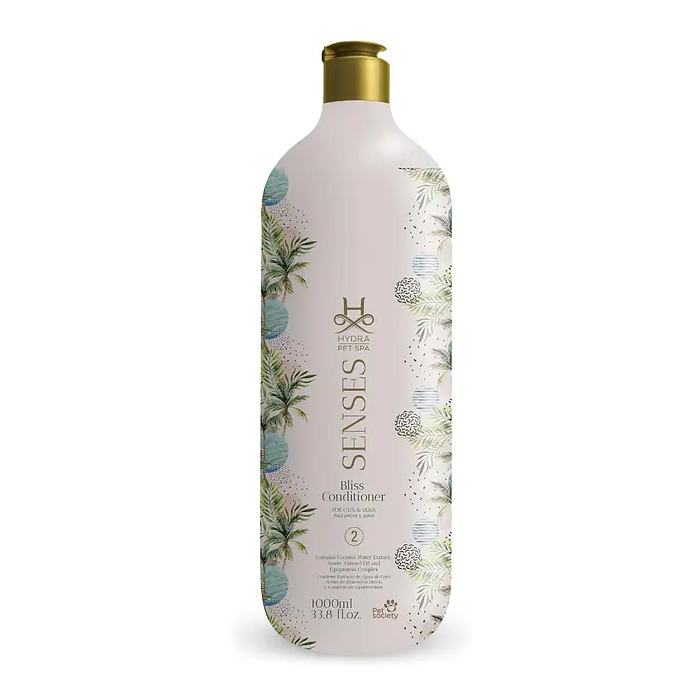 El Acondicionador Hydra Senses Bliss está formulado para uso profesional en perros y gatos de todas las razas y tipos de pelaje. Su fórmula enriquecida con extracto de agua de coco y aceite de almendras dulces promueve una hidratación profunda, nutrición intensa y mayor elasticidad del pelaje, facilitando el cepillado y dejando un acabado suave y brillante.