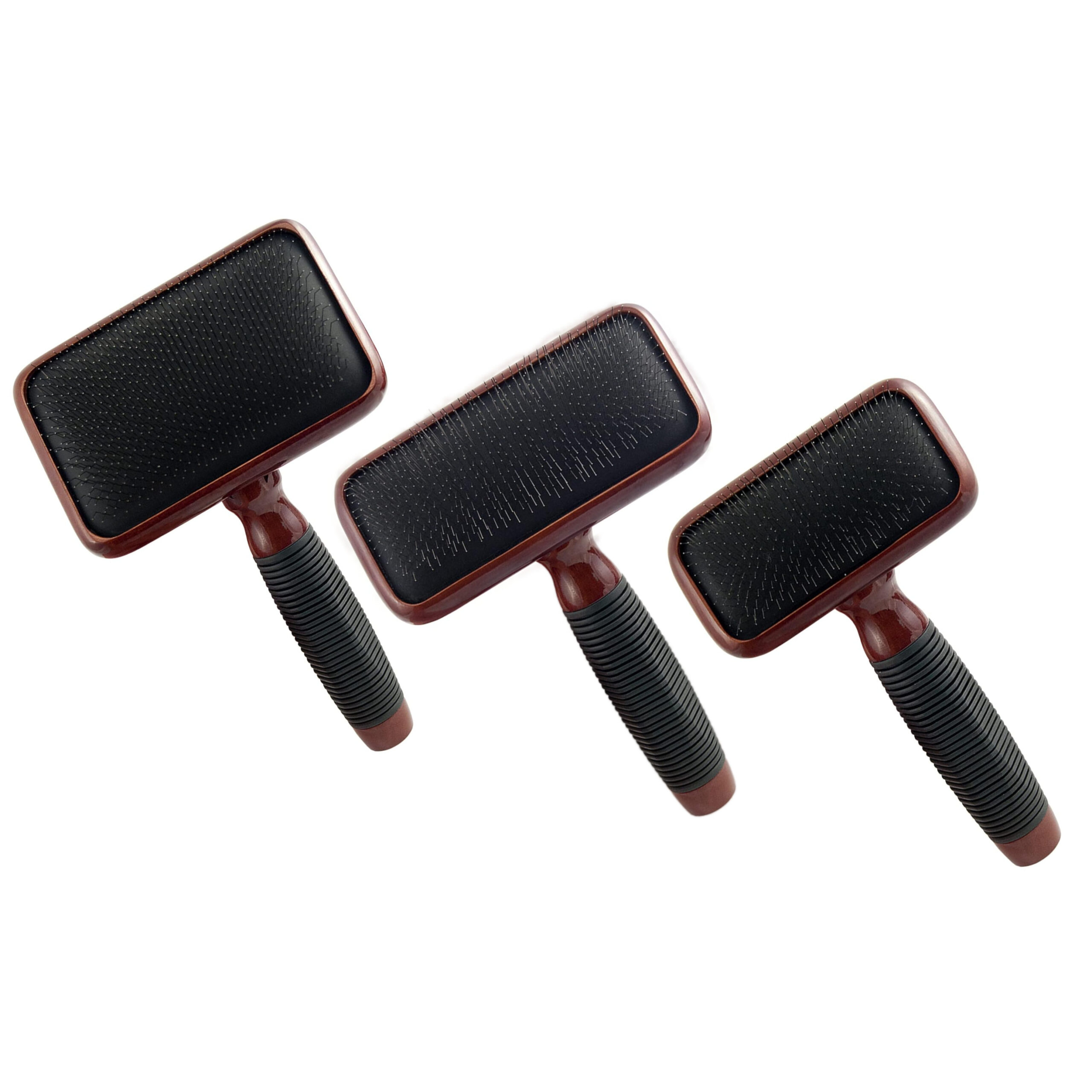 Cuenta con cerdas suaves y eficaces que desenredan y eliminan nudos sin causar molestias. Su diseño permite abarcar áreas más amplias de pelaje en cada pasada, siendo ideal para razas con pelaje voluminoso. Además, su mango ergonómico ofrece un agarre cómodo, facilitando sesiones de cepillado prolongadas sin fatiga.