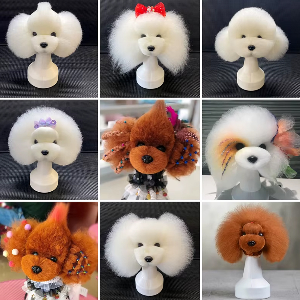Simula el pelo real, protegiendo las tijeras de aseo, y es perfecto para mostrar habilidades de recorte y coloración. Estos modelos de entrenamiento son herramientas versátiles que contribuyen significativamente al desarrollo profesional de los peluqueros caninos, ayudándoles a ofrecer un servicio de alta calidad y a garantizar la seguridad y el bienestar de los perros que atienden.